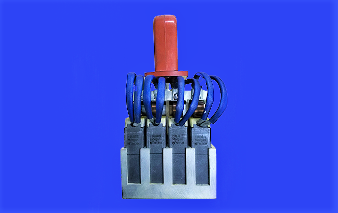 我厂生产刷握30余年,铁道部机车牵引电机刷握定点制造商。目前公司已具备各种规格的刷握制造模具2000余套,服务于世界各地,涵盖所有领域。根据不同的环境和不同的使用条件选择不同结构的刷握,对延长刷握的使用寿命至关重要。结构是保证刷握寿命的基础,生产工艺是刷握寿命的要害。我们出厂的刷握材质和技术指标满足图纸设计要求,刷盒孔常规设计公差一般按基孔制动配合:径向公差H7,轴向公差H11,刷盒孔拉削或推削粗糙度控制在Ra3.2-Ra1.6特殊要求增加挤压块降低粗糙度到Ra0.8,多孔刷盒用多把拉刀或推刀同时加工,确保刷盒加工后的同轴度,多孔刷盒的不同轴公差不大于0.36mm.刷握的固定面与刷盒的中心线平行度及间距公差均为:A=+-0.2。刷盒孔底面垂直于刷盒壁并垂直于固定面,其垂直度不大于0.25mm.刷握压指转动灵活,抬起后自由落下不能存在死点或闷卡现象,各个关节铆接牢固无脱节隐患。表面根据使用环境可进行镀Ni、镀Zn、镀Cr、镀仿金、镀铜、化学氧化、酸洗等方法处理,以保证产品的长久使用。避免刷盒体尖角、毛刺等不良缺陷存在,这些缺陷在潮湿环境下会引起放电现象。新出厂的刷盒压指压力已调整好,随着使用时间的延长弹力会疲劳而衰减,衰减过大会在碳刷的底部产生火花现象,请调整压力到如下要求:冶金、发电、起重机等电机类碳刷的压力0.15~0.35Kg/mm2之间;牵引电机类碳刷的压力在0.3~0.4Kg/mm2之间。同一台电机上的碳刷压力误差不大于10%之内,否则会造成电流密度不均局部过载。